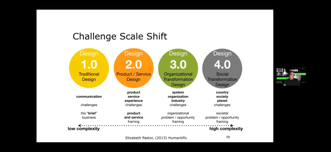论坛回顾(2):皮特·司库佩里——设计未来的教学本次会议围绕“设计未来”(Design Futures)”的主题,探讨“未来研究”和“思辨设计”对创新思维的启发、“短期未来”与“长期未来”对创新趋势的影响、“未来思维”和“设计思维”对创新实践的推动。会议将为海内外设计与创新领域的教育者、研究者、实践者、学生以及其他跨界创新人士提供一个探索学科前沿领域、讨论未来变革方向,构建国际学术社区的合作平台。 皮特·司库佩里 Peter Scupelli 卡耐基梅隆大学尼伦伯格设计副教授 卡耐基梅隆大学学习环境实验室主任 Nierenberg Associate Professor in Design, Director of the Learning Environments Lab, Carnegie Mellon University 演讲题目 设计未来的教学(Teaching to Dexign Futures) 我们的未来有很多不确定性,未来情境变得越来越复杂,诸如气候问题、全球疾病大流行等。同时社会也面临着“白人至上”、“种族主义”等问题。对此,Professor Peter提出了疑问:我们的设计师如何应对这样的问题,用什么样的设计去解决社会上的挑战? ![]() 作为设计教育者,Professor Peter经常向学生提出以上问题。设计思维是一个很强大的工具,它使我们的视角变得更宽广。当前人类对地球的影响是前所未有的,而设计在这其中可以发挥非常重要的作用。 ![]() Professor Peter提到了“去未来化”,这是指我们当下“不去思考未来,但保有着未来的视角”。这意味着我们今天的所作所为是为了我们可以拥有共同的美好未来。 Professor Peter强调了设计4.0的概念。他表示,设计1.0是传统的设计,设计2.0是产品的设计,设计3.0是组织性的转型设计,而设计4.0是社会转型的设计,它包括了国家、社会、星球所面临的挑战等等。 ![]() Professor Peter还援引了Arnold Wasserman的研究。在Arnold Wasserman看来,设计1.0是以物品为中心,2.0是着重于以人为本,设计3.0关于改变世界、改变社会以及社会的变革等,而设计4.0则是把以上设计理念都包含在转型设计上。当设计者面对整体社会层面上越来越大的问题时,各个层次的设计都需要调动起来。 作为一个设计教育者,Professor Peter经常向学生提出以上问题。设计思维是一个很强大的工具,它使我们的视角变得更宽广。当前人类对地球的影响是前所未有的,而设计在这其中可以发挥非常重要的作用。 ![]() 对此,Professor Peter提出了要解决的三个问题:时空中的设计、特定价值的设计、去全球化的设计。为了解决以上问题,Professor Peter提出了“乌托邦”和“去乌托邦”。表示想要实现有理想的世界,我们需要对设计者进行教育。并且介绍了他在卡耐基梅隆大学相关的课程设置。他介绍了“设计未来”、“设计未来课堂导论”、“设计未来场景导论”三门课程。 ![]() Professor Peter着重介绍了“设计未来”这一课程。课程采取翻转课堂的形式,面向大三、大四学生,包含了线下课和线上课。 Professor Peter加入了学生的“反思实践”环节,学生在课堂上思考、讨论课上所学,帮助他们加深学习效果,让他们更好地将其应用到自己的设计工作中。在课程结束后,学生会在白板上罗列成果。这一课程包括了15周和7周两种课程设置。 ![]() Professor Peter还强调了课程的相关内容是在和世界各个高校包括清华大学在内的教授学者的通力合作下完成的。课程目前在清华大学学堂在线有慕课课程。 |