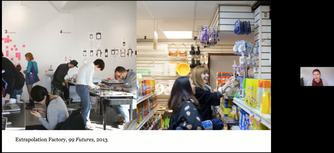 卡尔·迪赛欧举了Extrapolation Factory的项目“99 Futures”作为例子。 Extrapolation Factory非常独特的一点在于他们感兴趣的是在公共场合“思辨”如何发声。他们不仅仅在博物馆或是昂贵的产品上发声,而是在每天日常的生活中发声。 ![]() 在美国,99美分店非常受欢迎,人们可以去买非常廉价的产品。 99美分店在玻璃上有一个“未来桶”。这不仅仅是设计,而是把这些设计产品都放到商店里,将物品放到真实的环境中。观者可以在其间走动,在商店中去看到这些99美分的物品,真正想象和体验一个廉价的未来。 ![]() 把产品放到99美分店使我们看到一个共同思辨的过程。从聚焦在物体转向聚焦在事件进行共同创造,共同预见未来,预见世界。 ![]() 猜想成为了社会探索的一种模式。社会探索的社会性体现在两个方面。首先,社会性是由于我们的共同生活所带来的社会问题与社会话题的共同体验。它从探索变成了社会性的活动。另一方面,社会性表现在活动的协作性上。99美分店让人们真正走在一起,走进99美分店进行体验。 设计者怎么跟世界互动,怎么跟未来互动?不是声称我们有什么权利,有什么权威,而是跟别人一起来产生一种合力。我们的未来在不断改变,变得只有依附性,没有办法控制。但是未来也是充满希望的,它给我们提供一个空间,我们在其间可以改变,可以成长。 |